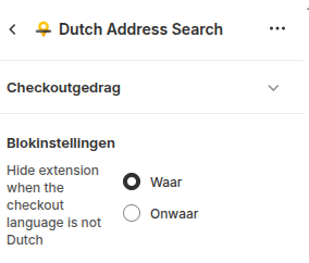 Kies voor Waar om de extensie niet te laten zien wanneer de taal waarmee de klant de webshop bezoek een andere taal is dan Nederlands. Dit voorkomt dat buitenlandse klanten deze velden te zien krijgt.